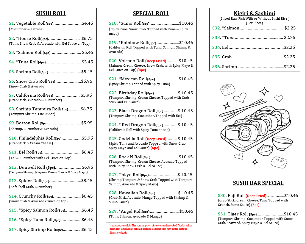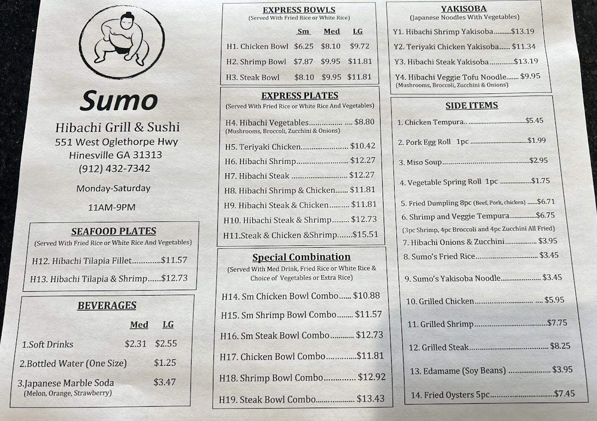 SUMO - Hinesville Menu